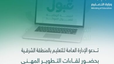 تعليم الشرقية يدعو موجهِي وموجهات المرحلة الثانوية لحضور لقاءات التطوير المهني للتعريف بمنصة قبول